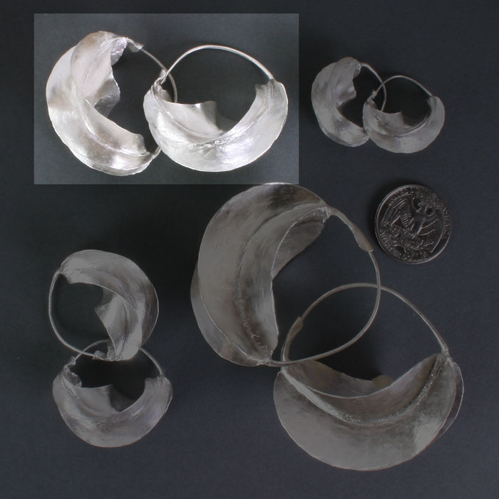 When I started this business over 25 years ago, these earrings were my first purchase because I listened to my wife. They are still just as popular! The Fulani are a people spread throughout W. Africa but these earrings are specific to the Mopti/Djenne area of Mali and nowhere else. Traditionally in gold, mine are sterling silver. The craftsmen using traditional tools and techniques start with a rod of sterling silver and hammer individual earrings ... pieces of art!